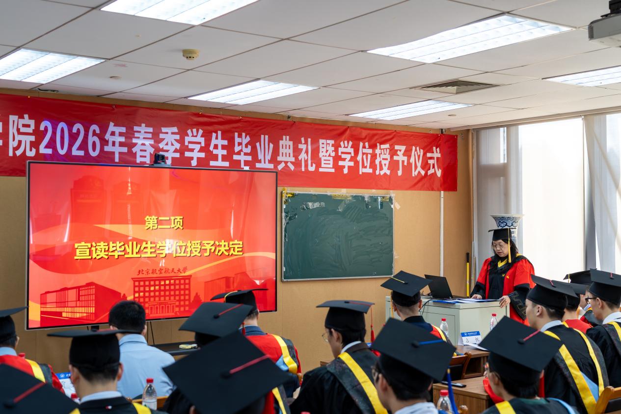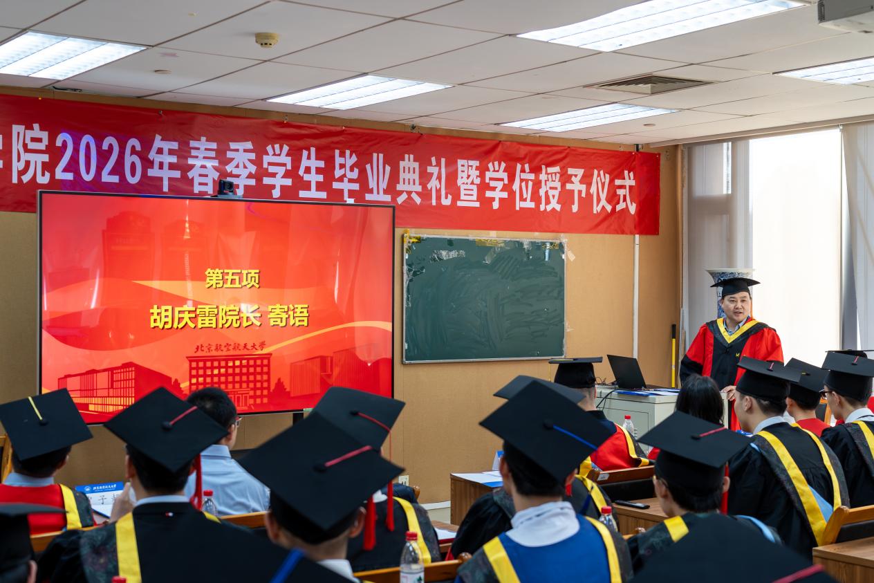 在熱烈的掌聲中,胡慶雷院長(zhǎng)深情寄語(yǔ)畢業(yè)生。他代表自動(dòng)化學(xué)院全體師生員工向圓滿完成學(xué)業(yè)的25名博士生和7名碩士生表示熱烈祝賀,并向悉心指導(dǎo)的導(dǎo)師和默默支持的親友致以衷心感謝。胡院長(zhǎng)回顧了“十四五”期間學(xué)院取得的輝煌成就,指出這些成績(jī)的取得,離不開(kāi)每一位師生的辛勤付出,更凝聚著同學(xué)們的青春力量。臨別之際,胡院長(zhǎng)提出三點(diǎn)期望:第一,以心為舵,向國(guó)而行,將個(gè)人理想微光匯入強(qiáng)國(guó)建設(shè)星河,讓人生價(jià)值在為國(guó)奉獻(xiàn)中熠熠生輝;第二,以實(shí)為基,向高而攀,在腳踏實(shí)地中練就過(guò)硬本領(lǐng);第三,以闖為翼,向新而生,傳承北航“敢為人先”的基因和學(xué)院院訓(xùn),在智能科技前沿開(kāi)拓新賽道。最后,他深情表示學(xué)院永遠(yuǎn)是同學(xué)們的“精神港灣”,并預(yù)祝畢業(yè)生及家人馬年快樂(lè),前程似錦!