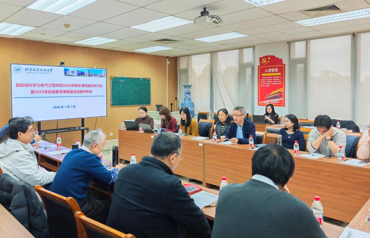 (通訊員 肖珊琪/審核 王薇)2026年1月7日上午,自動(dòng)化科學(xué)與電氣工程學(xué)院2026年數(shù)字課程建設(shè)研討會(huì)暨2025年在建數(shù)字課程建設(shè)進(jìn)展評(píng)審會(huì)在新主樓E706會(huì)議室召開(kāi)。會(huì)議由學(xué)院研究生教學(xué)副院長(zhǎng)王薇主持,學(xué)院黨委書(shū)記鄭征、研究生院培養(yǎng)處副處長(zhǎng)王磊、國(guó)家級(jí)教學(xué)名師樊尚春教授、原教育部自動(dòng)化專業(yè)教學(xué)指導(dǎo)分委員會(huì)副主任委員申功璋教授、學(xué)院本研教育督導(dǎo)組組長(zhǎng)王少萍教授、龔光紅教授、北京市教學(xué)名師王艷東教授、學(xué)堂在線平臺(tái)負(fù)責(zé)人、學(xué)院數(shù)字課程建設(shè)負(fù)責(zé)人、院督導(dǎo)組專家、基層教學(xué)組織負(fù)責(zé)人等20余人出席會(huì)議。